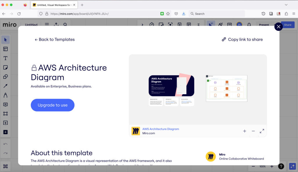 While best known as a digital whiteboard, Miro also offers strong diagramming capabilities—including network templates for AWS, Azure, and Kubernetes. Its interface is clean and collaborative, with commenting and video chat built-in.Network templates are only available in the Business plan and above.