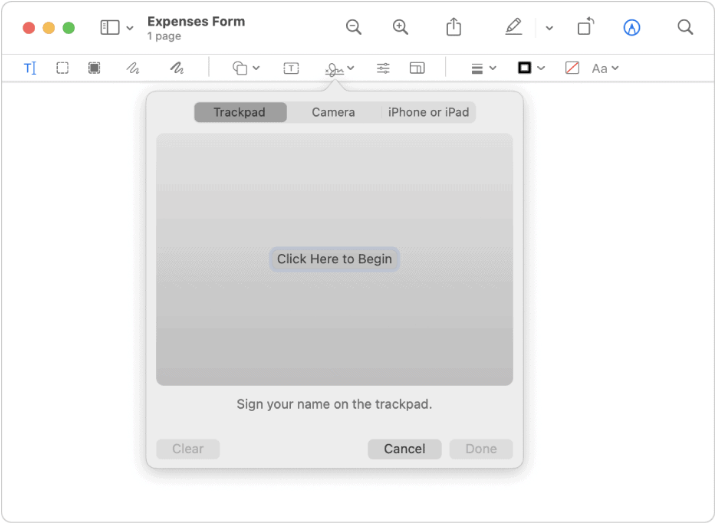 Preview is a free built-in app on every Mac. It offers basic signing using your trackpad, a connected tablet, or your camera to capture a signature on paper.