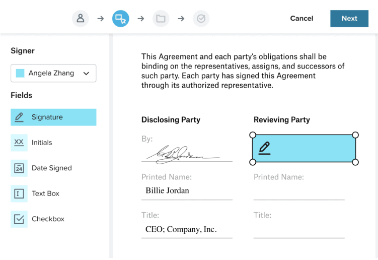 HelloSign stands out with its smooth integration with cloud services like Dropbox, Google Drive, and OneDrive. It’s user-friendly, supports templates, and offers clear tracking.