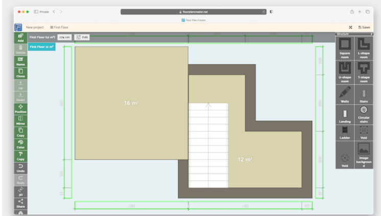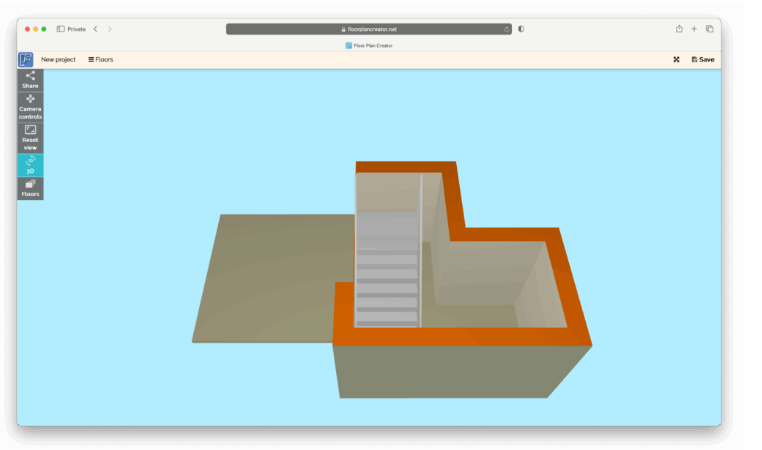 Adding multiple floors is as simple as clicking the “Floors” button. There’s also a 3D view option—click the 3D button to rotate and explore your layout from different angles.