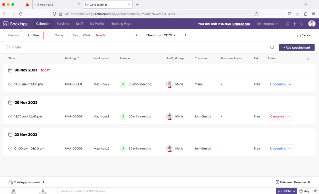 3. Zoho Bookings — Best for Beginners