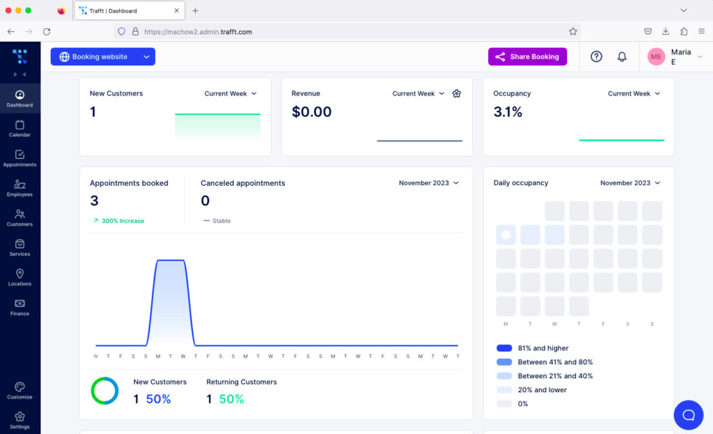 Trafft is built for businesses that handle large booking volumes—such as clinics, salons, and consultants. It includes a website builder, supports integrations via Zapier, and works with Zoom for virtual appointments.You can also embed booking widgets on websites or social media pages. It’s a robust platform aimed at established businesses.