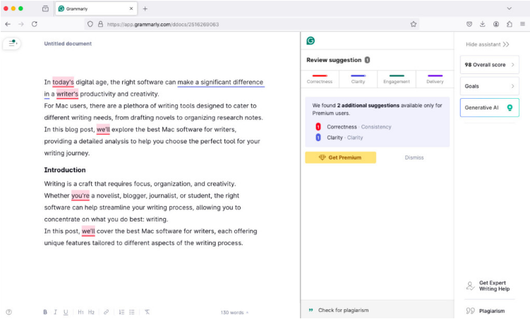 Grammarly is like having a proofreader on standby. It checks your writing for errors, improves clarity, and even helps adjust tone. The free version covers the basics, while Premium offers advanced style suggestions and a plagiarism detector—essential for making sure your work is always original and well-cited.