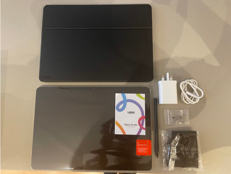 The UT3 arrives in substantial packaging, partly due to a very sturdy protective case. Right out of the box, the tablet makes a strong impression with its large 14.25-inch display and premium-feeling matte “NanoMatte” finish. While its size is a major plus for the drawing canvas, it does require more desk space.The package is comprehensive, including the U-Pencil stylus (pre-calibrated and charged), a folio stand, a drawing glove, a USB-C cable, power adapter, spare nibs, and the necessary documentation.